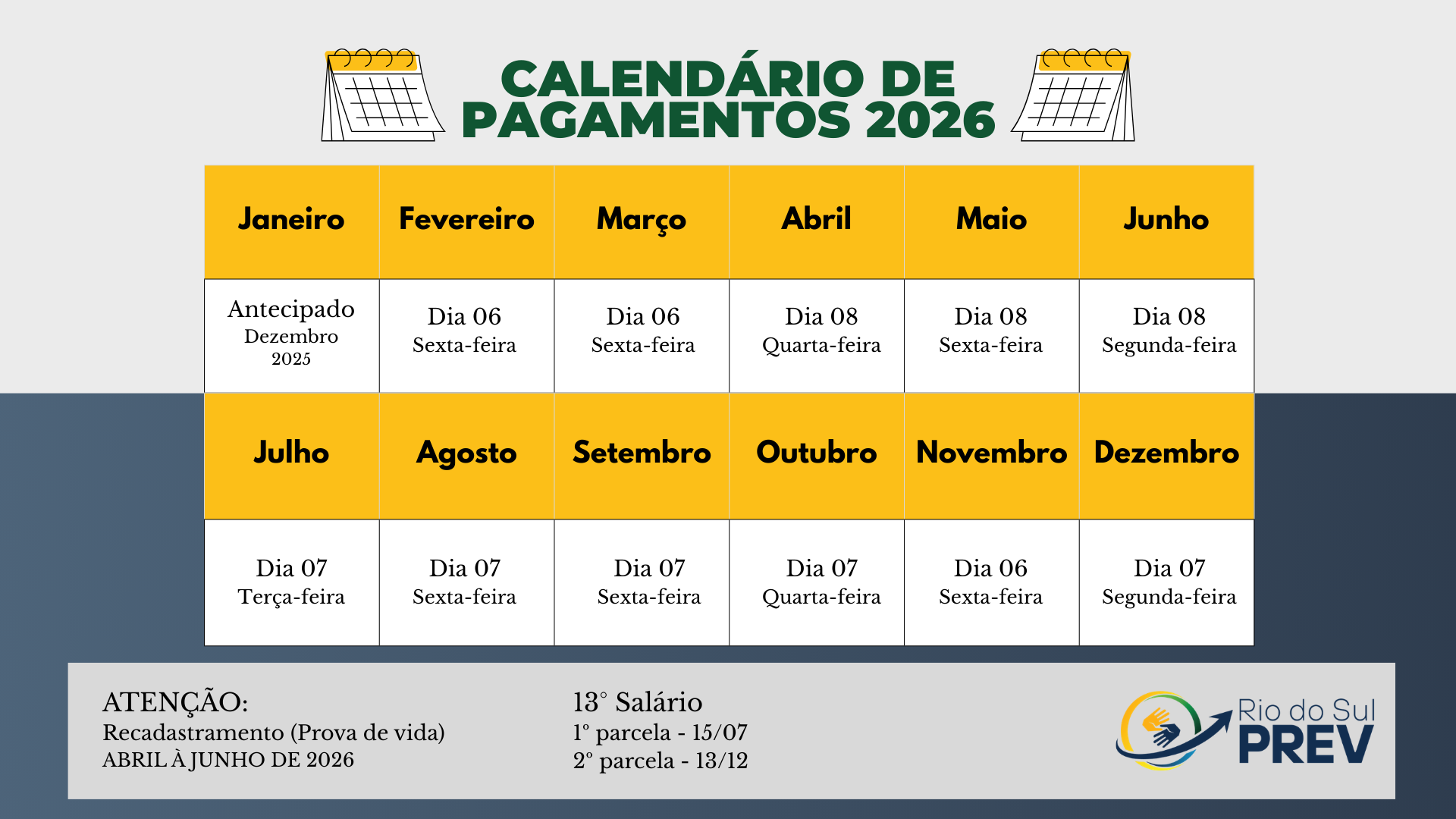 NOTÍCIAS | Calendário De Pagamentos 2026