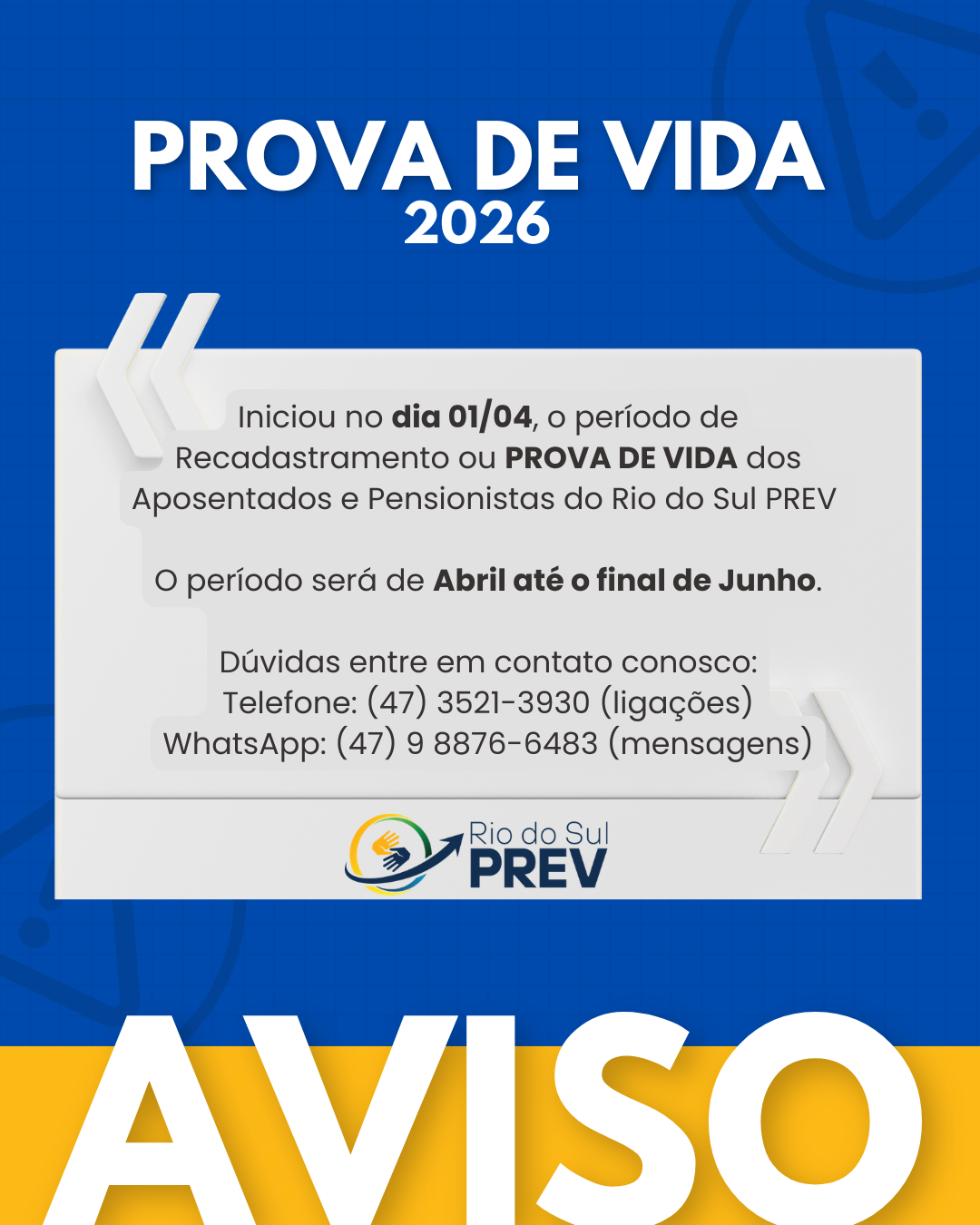 Inicia em 01 de Abril o Recadastramento 2026 (Prova de Vida) do Rio do Sul PREV.